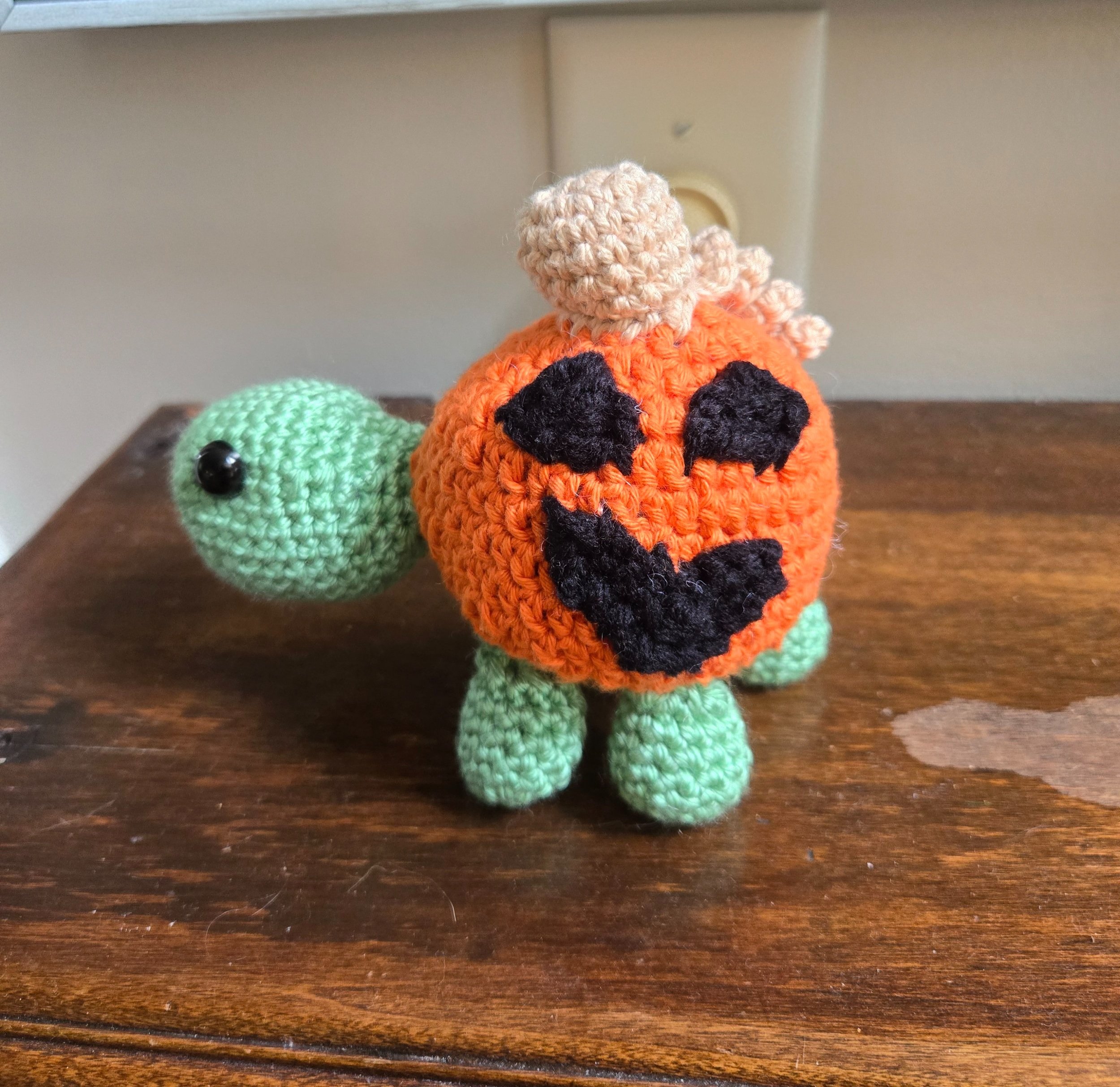 One of my more recent designs, Frankie is the perfect addition to your spooky menagerie! You can adjust his pumpkin color and either make him with or without a face, whichever you prefer!