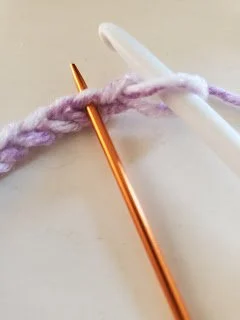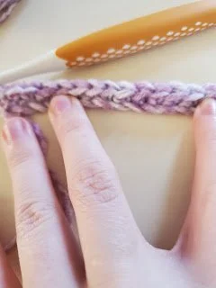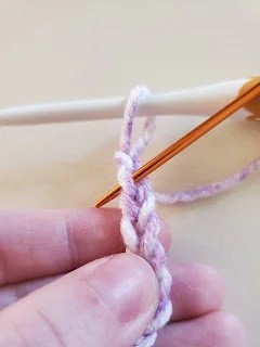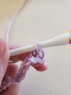 You want to place your hook in the second chain from the hook. When identifying which chain this is, it will be the second v from the hook, not the first.