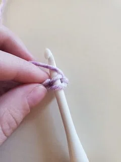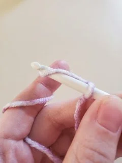 Now, to make a chain, all you need to do is hook the yarn over the head of your hook, pull it through the loop, and repeat until you get the number of chains you want.