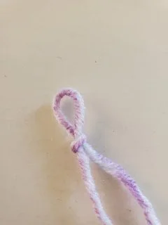 First thing you need to do (other than getting your yarn and hook) is make a slip knot. This means folding the yarn over itself and pulling the working yarn through the loop you make.