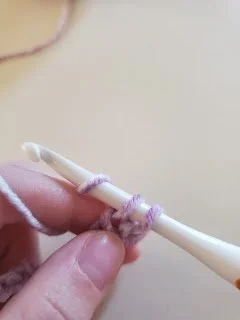 After pulling the yarn through, you will want to yarn over again, this time pulling it through both the loops on the hook. After you've done that, you'll have made your first single crochet! Now just repeat this all the way across the chain.